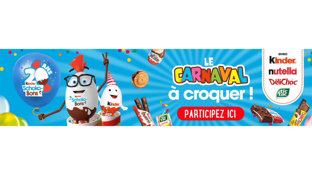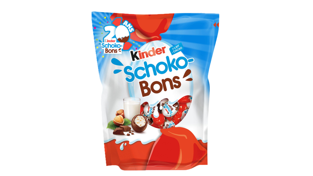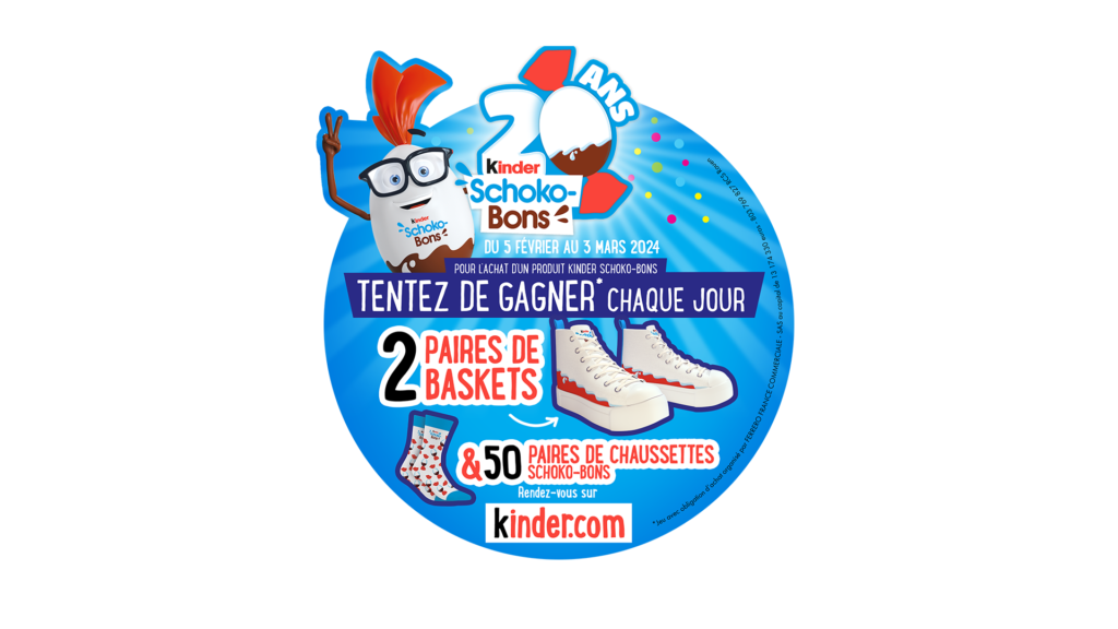 En 2024, Kinder Schoko-Bons fête ses 20 ans en France. Marque positive, fun et gourmande du rayon confiserie, elle séduit petits et grands avec son chocolat, ses éclats de noisettes et sa forme à partager iconique. Incarnée par la mascotte Mr. Bon, personnage décalé, complice des moments de partage en famille ou entre amis. Cet anniversaire est l’occasion de renforcer son statut de love brand à travers une l’opération nationale multimarques : Le Carnaval !