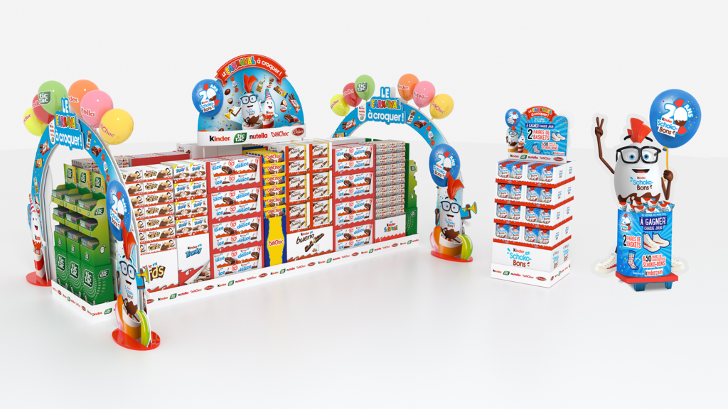 Ce concept a permis de créer une vraie rupture visuelle en magasin, tout en conservant les codes affectifs de Kinder. Il s’est décliné sur l’ensemble des supports, du packaging Kinder à la PLV marque et Carnaval.