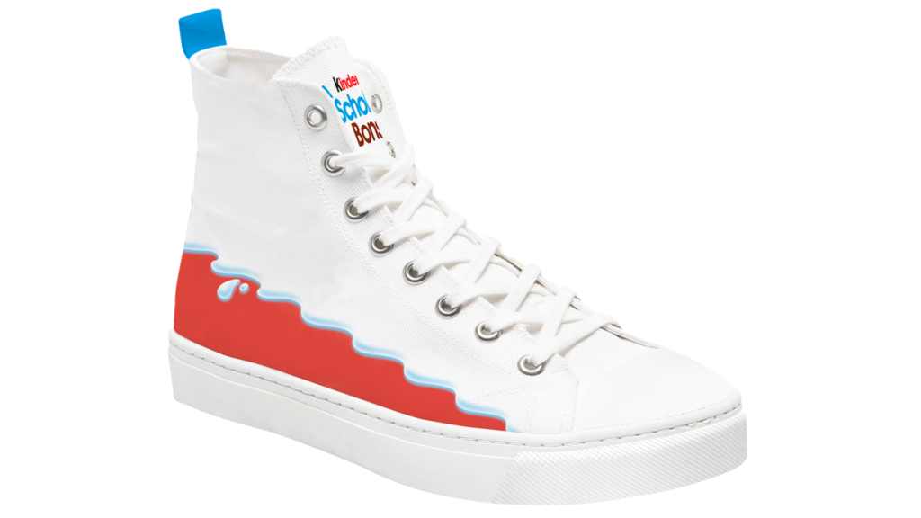 – Conception et création d’une mécanique de jeu identitaire, unique et festive : des paires de baskets kinder collector pour fêter en beauté l’anniversaire. La basket est intergénérationnel, indémodable à l’esprit des petits et des grands.